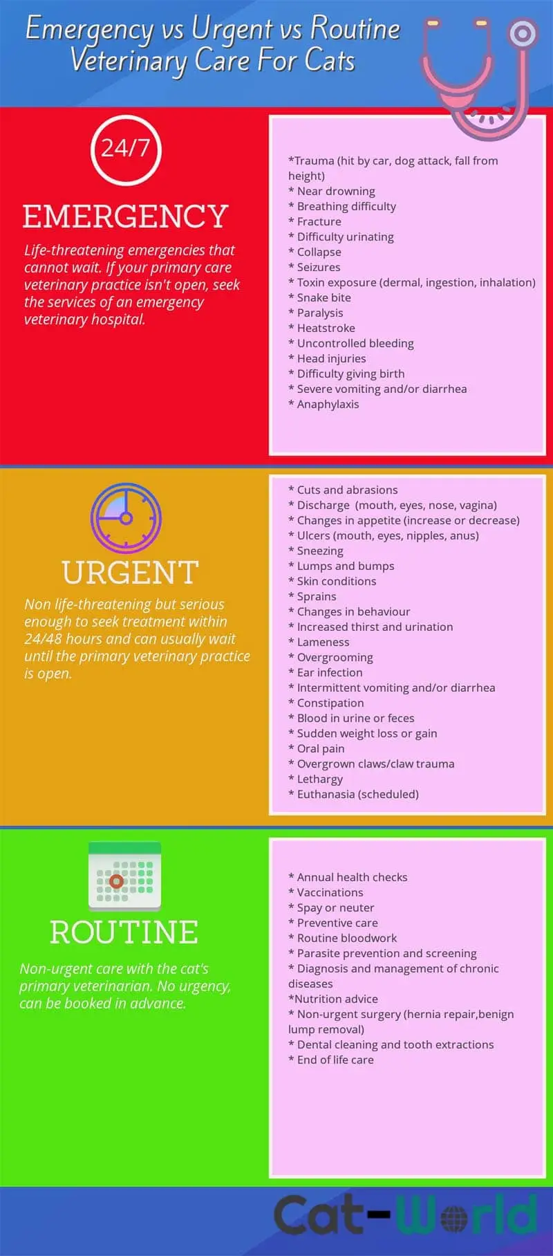 Veel kattenbezitters moeten beslissen of de kat dringend of kritisch is, maar het is niet altijd gemakkelijk om te beslissen hoe lang de kat de dierenarts de volgende dag ziet.